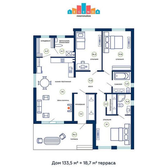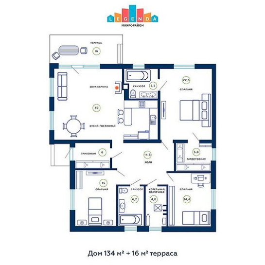 - В домах площадью 134 кв. м увеличена площадь террасы;
