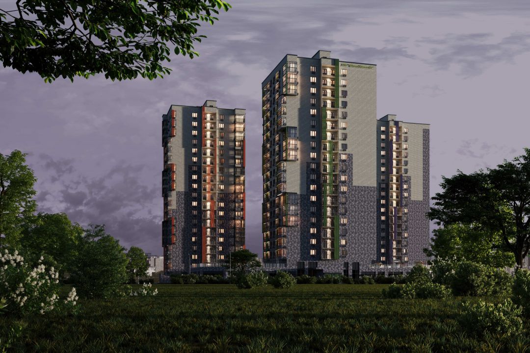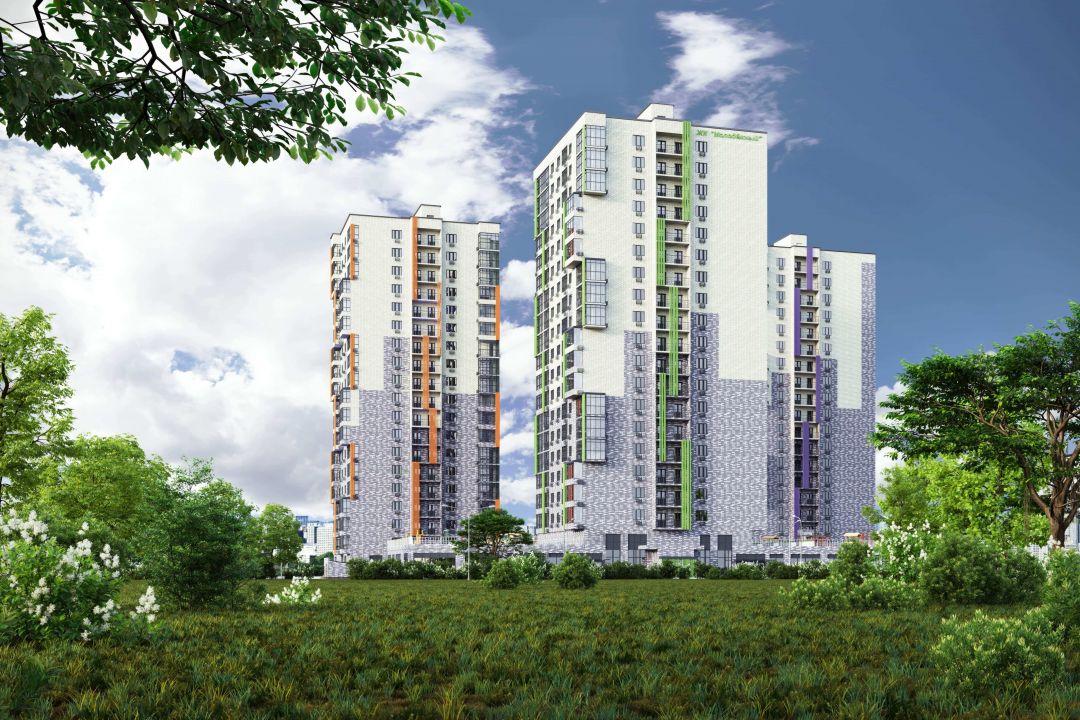 Каркасно-монолитные дома имеют наземный вентилируемый фасад, высокие потолки (2,85 метра) и застеклённые лоджии. В комплексе обустроены две детские площадки и три спортивных для активного отдыха. Первые этажи занимают коммерческие помещения.